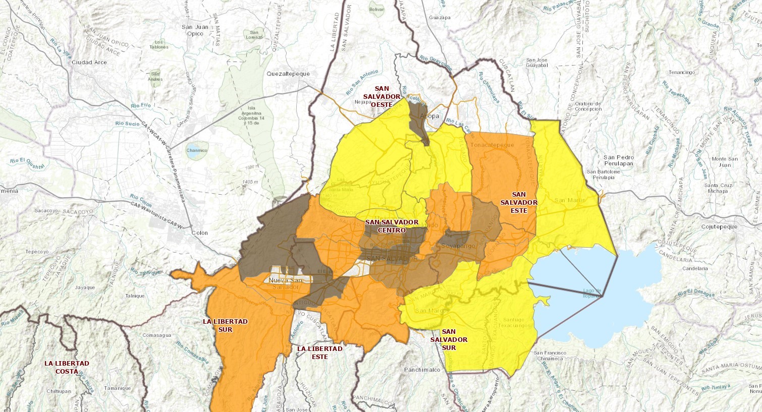 Description: Este mapa muestra las macrozonas del Área Metropolitana de San Salvador (AMSS), proporcionando información sobre la cantidad de viajes socioeconómicos asociados a los hogares de RENTA MEDIA. En él se destacan las áreas donde se concentran las familias de ingresos económicos bajos, lo que permite identificar las zonas con mayor presencia respecto a los viajes por renta media del AMSS.