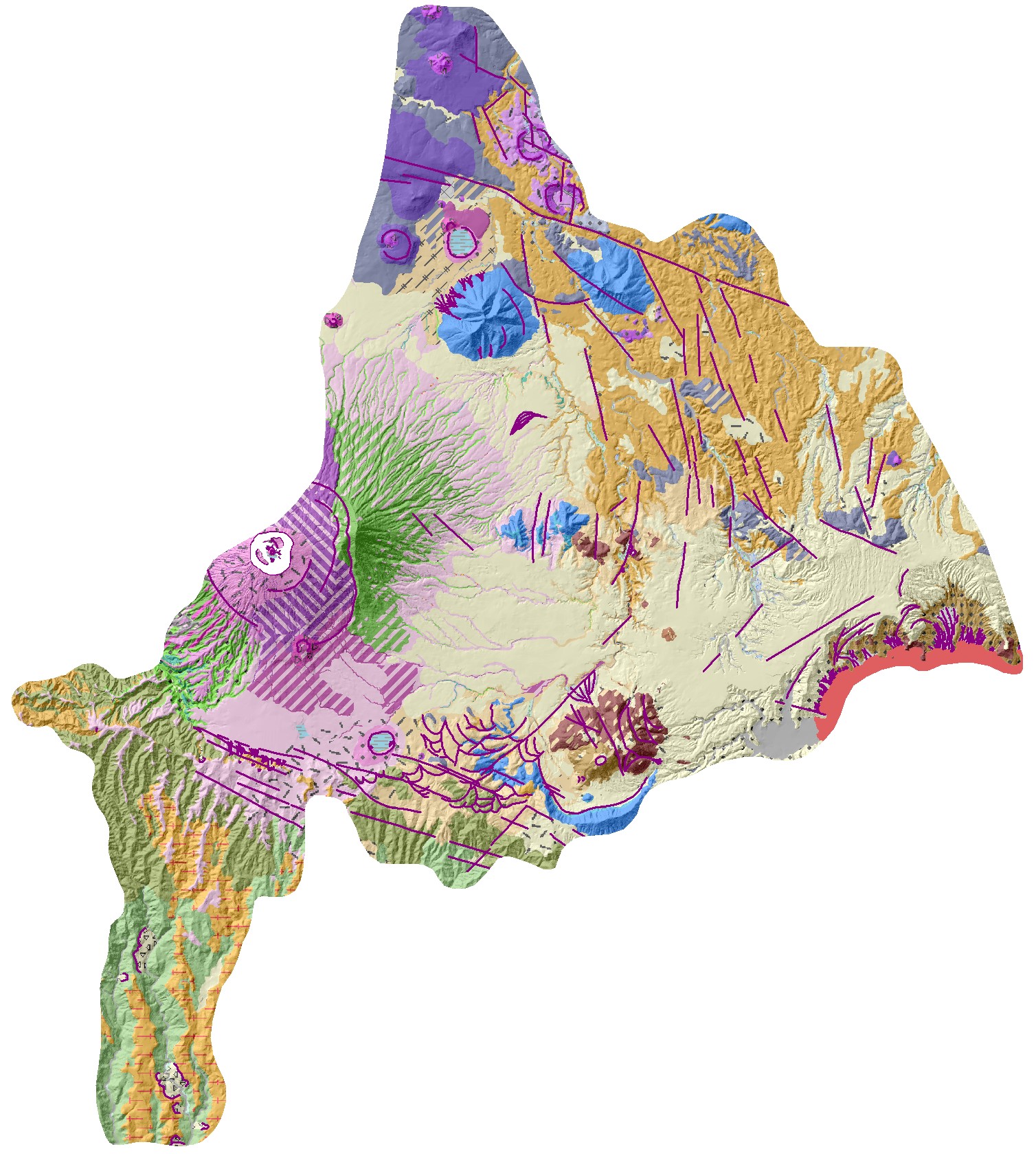 Label: Complejos de estratovolcanes/efusivos basálticos/andesíticos de la zona proximal cubiertos por tefras
